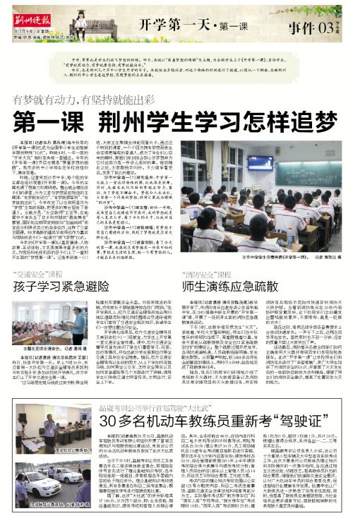 《荊州日報》9月2日第3版:第一課 荊州學生學習怎樣追夢