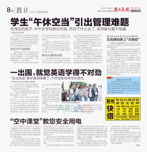 《楚天民報》9月17日第8版報道我校學子英國游學