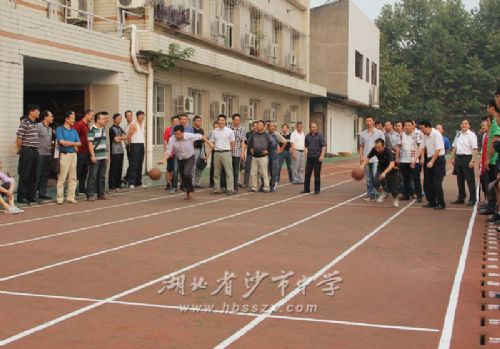 為豐富廣大教職工的業余生活,增進教職工之間的友誼,沙市中學工會在學校運動場奉上了精彩的一幕——教職工運球比賽。