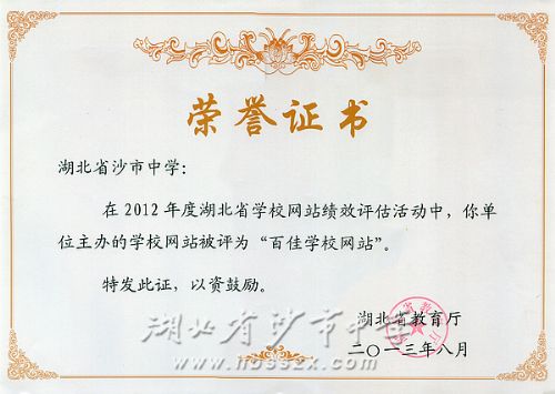 2013年08月學校網站被省教育廳評為"百佳學校網站"