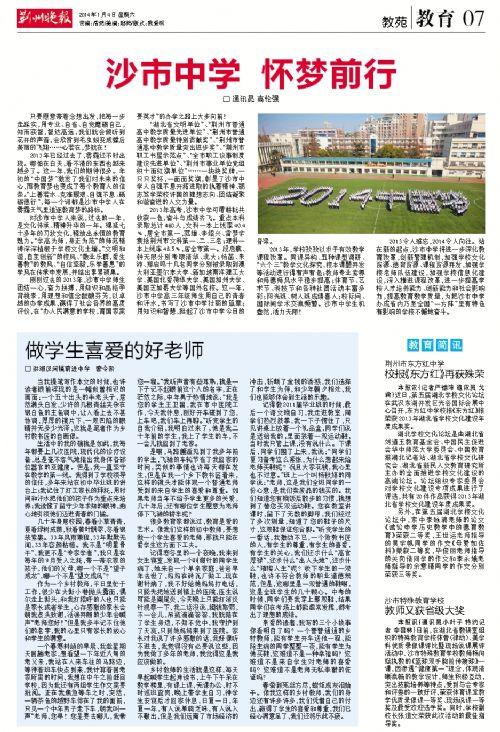 《荊州晚報》1月4日報道沙市中學新年愿景