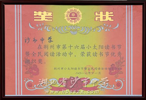 2013年11月獲荊州市第十六屆小太陽讀書節優秀組織獎
