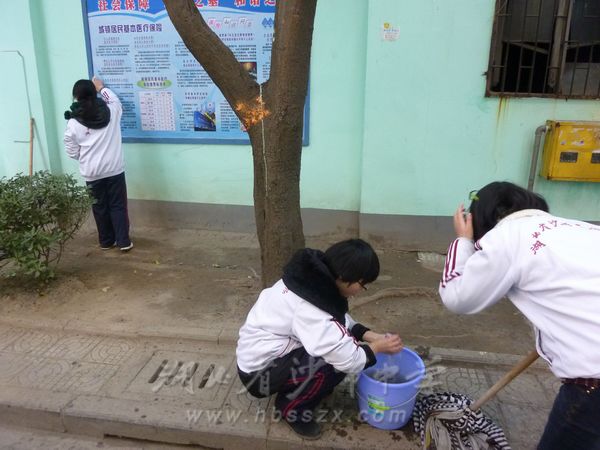 在綠化村社區打掃清潔的同學們,不懼寒冷,操起掃帚、拖把、水桶、抹布等工具,一絲不茍地開始了勞動。清掃花壇、街道,清潔瓷磚、宣傳欄,清理墻面小廣告欄等,分工明確,各司其職,得到了綠化村居民們的一致稱贊。綠化村社區的鄧主任說,這些孩子真的不錯,不怕臟亂,做事認真,態度禮貌。同學們也對此次活動感受頗深,高二(12)班的吳同學說:“這次社會實踐活動帶給我的感受有很多,有辛苦也有快樂,是我高中以來做過的最有意義的事?!?br />
