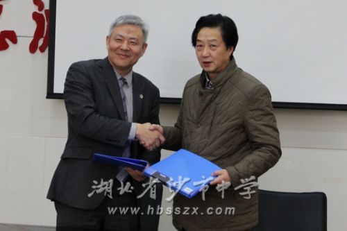 沙市中學校長鄧北平(右)與都柏林工業大學教授吳兵(左)互換協議文本 3月11日下午,愛爾蘭共和國都柏林工業大學與湖北省沙市中學校長實名推薦合作項目簽約儀式在沙市中學舉行,沙市中學校長鄧北平、都柏林工業大學教授及校長助理吳兵先生分別代表各自學校在合作協議上簽字。協議約定,自2014年起,沙市中學每年選擇5至10位優秀畢業生,經校長書面推薦,向都柏林工業大學可供選擇的本科課程提出入學申請。都柏林工業大學對符合學校英語入學水平的學生實行免試入學。校方并對入學的學生提供一定程度的學費減免優惠。