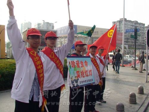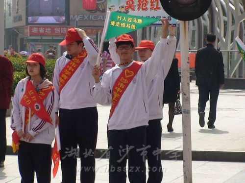 沙市中學(xué)學(xué)子開展交通文明勸導(dǎo)活動