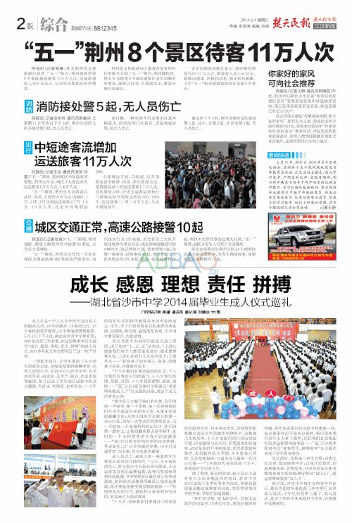 《楚天民報》5月4日報道我校高三成人禮