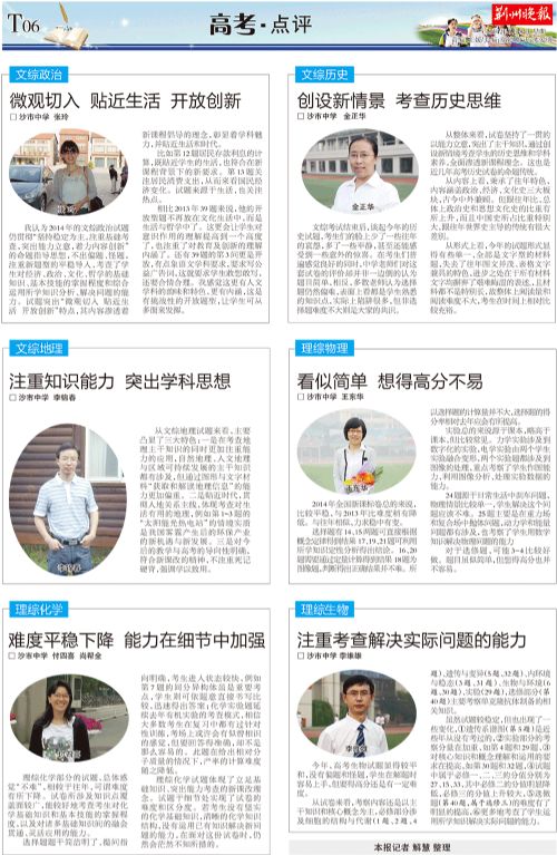 《荊州晚報》6月9日專版刊登我校教師點評高考試卷