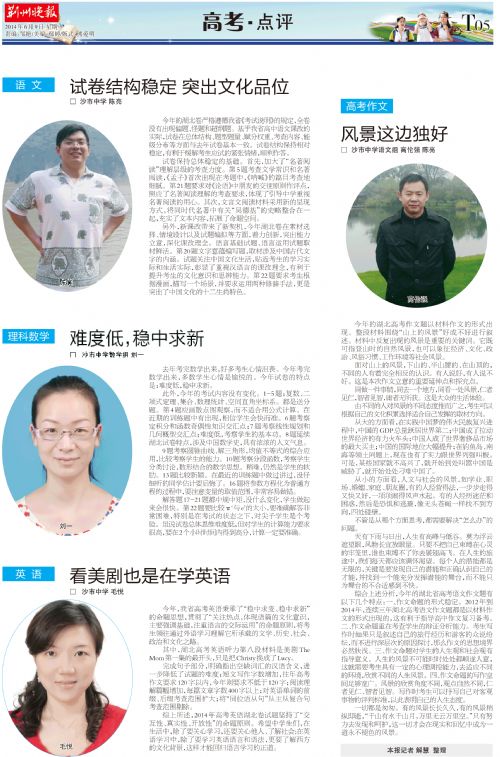 《荊州晚報》6月9日專版刊登我校教師點評高考試卷