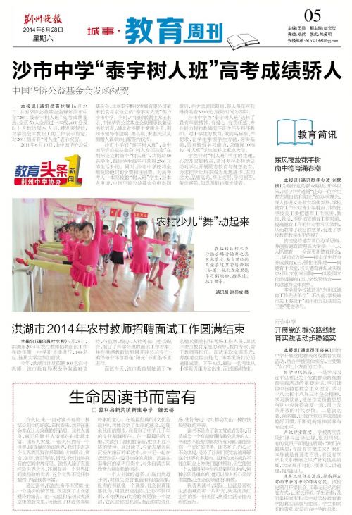《荊州晚報》6月28日報道我校泰宇樹人班驕人成績