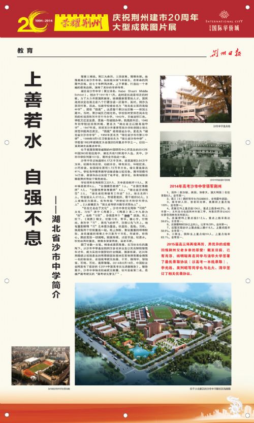 《荊州日報》2014年9月28日"榮耀荊州"大型圖片展介紹沙市中學辦學成就