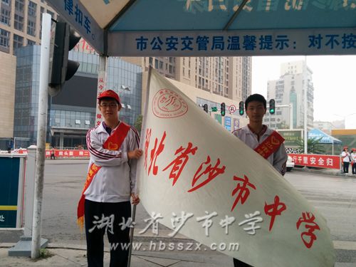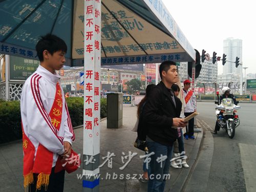 10月18號上午,沙市中學(xué)高二(9)班全體同學(xué)在沙市便河路口舉行青年志愿者活動(dòng)——?jiǎng)褡栊腥岁J紅燈,提醒他們過馬路注意安全。同學(xué)們頭戴紅帽,身披紅色佩帶,為沙市便河增添了一道絢麗的風(fēng)景線,同學(xué)們整齊的站在道路口上,以真誠的笑容迎接每一位行人,以親切的態(tài)度勸導(dǎo)每一位行人遵守交通規(guī)則,得到了市民的一致好評。通過這次活動(dòng),同學(xué)們深切體會到了交警執(zhí)勤的辛苦。我們應(yīng)該以自我做起,堅(jiān)決抵制闖紅燈行為,做文明的荊州人!
