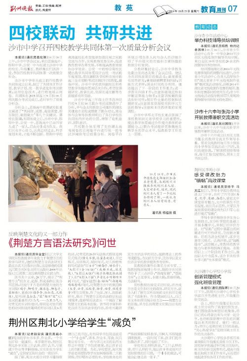 《荊州晚報》2014年10月25日報道我校組織召開四校教學聯合體聯考質量分析會議