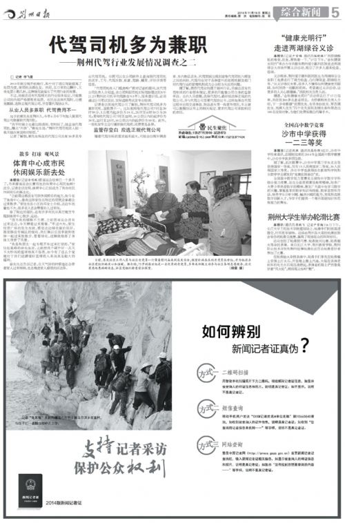 《荊州日報》2014年11月19日報道我校參加數學全國競賽獲獎