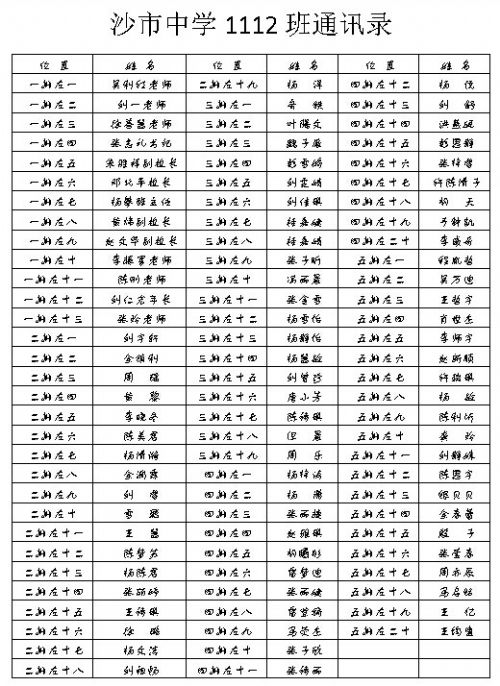 班主任(數學老師):陳剛