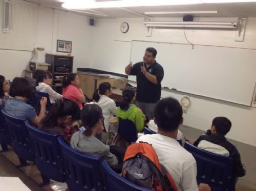 同學們在加利福利亞大學長灘分校校園內上課的合影