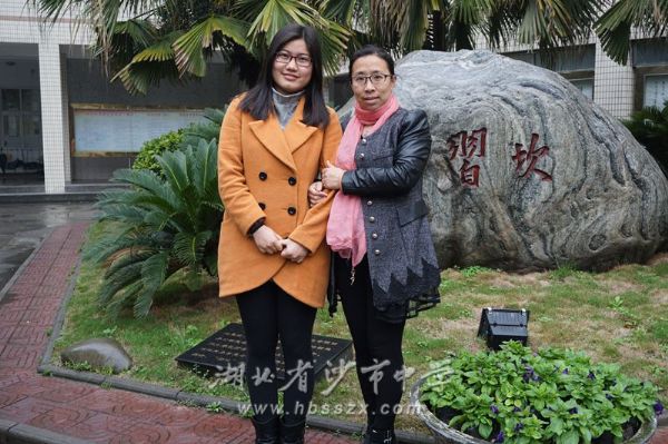 張心怡與原班主任全正華老師合影 4月6日,2011屆校友張心怡回到母校沙市中學,與教過自己的老師和學校領導座談,匯報自己的學習成果。