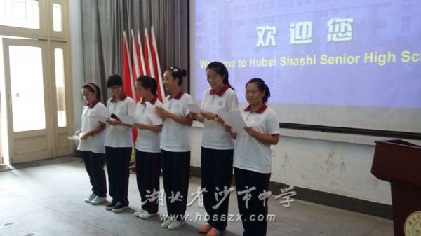 接下來,沙市中學高一、高二文科班的24名志愿者同學表演了精彩的節目,有英語歌曲演唱,英語相聲等;新加坡義安理工學院的學生代表也演唱了英語歌曲?;顒託夥諢崃?,精彩紛呈。