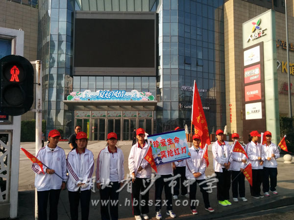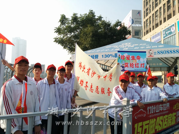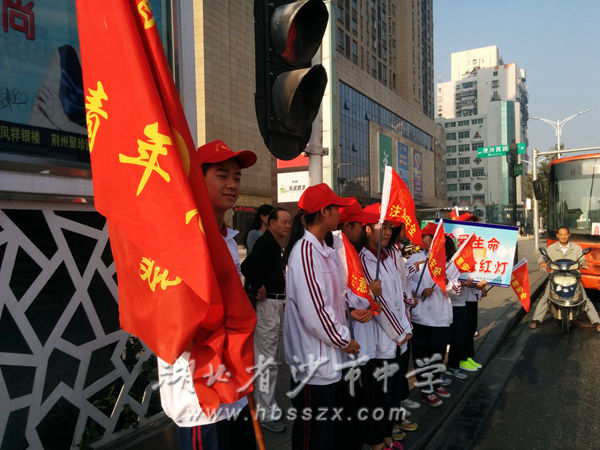 為倡導(dǎo)居民文明安全出行習(xí)慣,養(yǎng)成良好文明交通意識(shí)。10月17日上午,沙市中學(xué)2015級(jí)4班的文明交通勸導(dǎo)志愿者們?cè)诎嘀魅涡軣樅蛯W(xué)工處王雨老師的帶領(lǐng)下,來(lái)到北京路便河路口,開(kāi)展文明交通勸導(dǎo)志愿服務(wù)活動(dòng)。