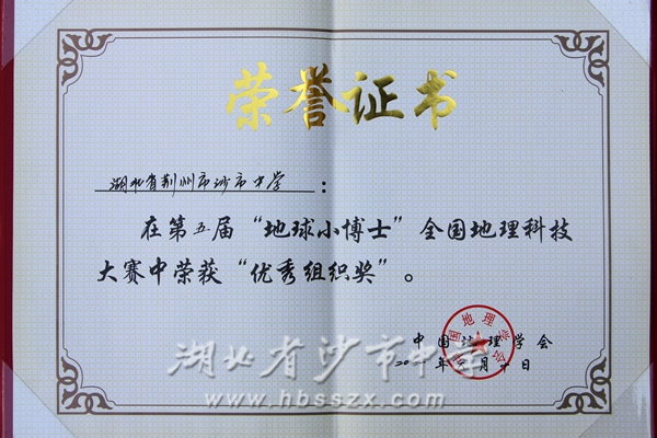2011年06月獲第五屆"地理小博士"全國地理科技大賽優秀組織獎