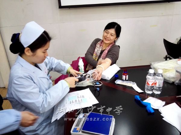 200ml,300ml,400ml,一滴滴,一袋袋,流淌的鮮血讓生命燃起希望,讓家庭回歸幸福。3月14日上午,沙市中學教師卷起衣袖,積極無償獻血,用他們的熱血獻愛心,鑄師魂,樹形象。