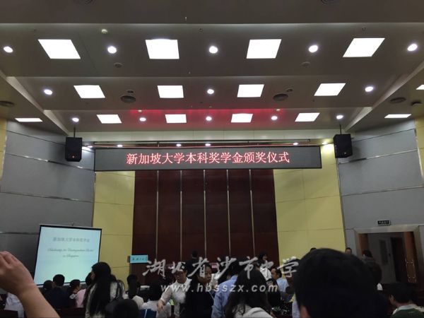 在新加坡大學本科獎學金頒獎儀式現場,劉畫荻同學落落大方,舉止得體,不僅與來自新加坡國立大學和南洋理工大學的教授們進行了友好的交流,并與新加坡教育部官員進行了愉快的交流。劉畫荻同學的表現獲得了一致好評,充分地展示了沙市中學學生的整體素質和國際交流素養。