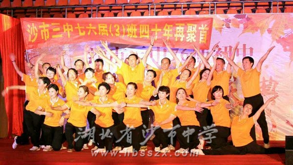 76屆初中畢業生四十年慶典活動得到了沙市中學校領導的大力支持,并在76屆組委會同學的策劃下 ,以載歌載舞的形式展現了這一代人的青春歲月,琵琶和薩克斯獨奏以及京劇清唱的才藝,優雅的旗袍舞蹈表演等, 無不體現了這代人開朗而又富有激情的生活態度,場面熱烈壯觀、盛況空前,最后以一曲合唱“明天會更好”完滿謝幕。