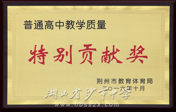 2016年10月獲"荊州市普通高中教學質量特別貢獻獎"
