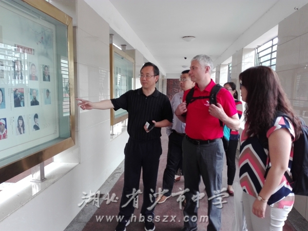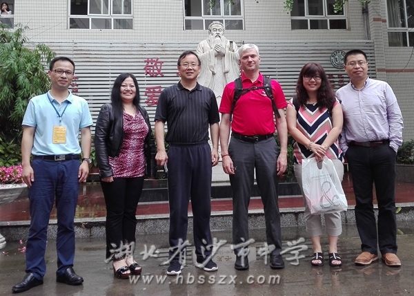 在副校長(zhǎng)趙文華的陪同下,Nate Myers博士參觀了孔子雕像、文化長(zhǎng)廊和教學(xué)樓。他不僅對(duì)中國(guó)傳統(tǒng)文化十分感興趣,更對(duì)沙市中學(xué)的校園文化給予了很高的評(píng)價(jià)。
