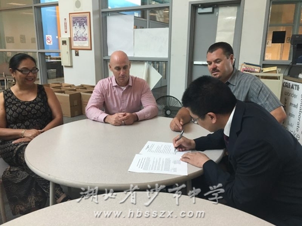 美國威利奇高中校長Joseph Biagioni先生在協議上簽字