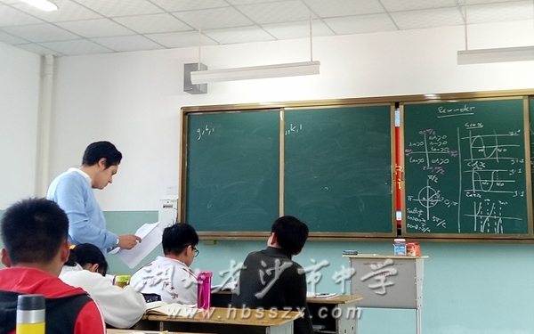 學生上黑板演算 10月21日下午,學校A-LEVEL國際課程教室迎來了一批特殊的“學生”,他們端端正正坐在教室后排,一邊認真聽課,一邊做筆記。這些“學生”是應對外交流處的邀請,前來參加A-LEVEL國際課程公開課的家長代表。高一年級青年英語教師謝佳、對外交流處主任鄧兆紅參加了本次公開課活動。