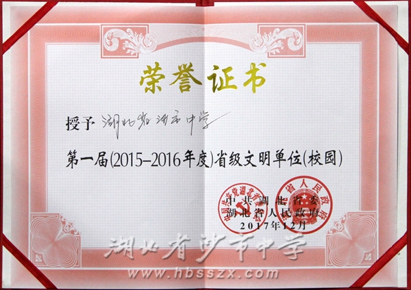 2017年12月獲評第一屆(2015-2016年度)省級文明單位(校園)