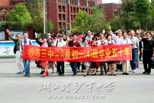 觀者如云 碩果累累的豐收季節,喜事讓人激情飛揚,心潮澎湃。10月1日上午,沙市中學(原沙市三中)1968屆高、初中8個班共300多名師生從四面八方匯集沙市中學,徜徉新校園,暢述同窗情。沙市中學黨委副書記張志禮、沙市中學教育發展基金會會長曹光炎親切接見了全體與會校友。