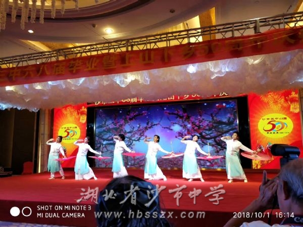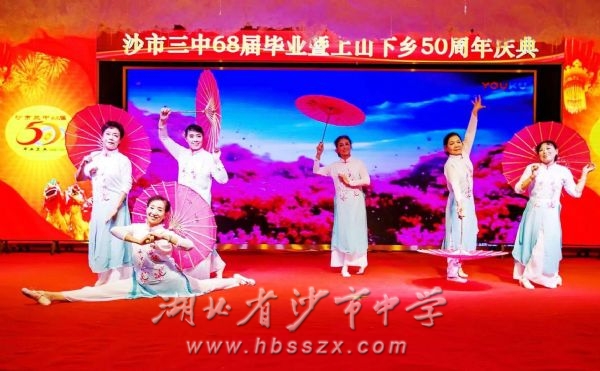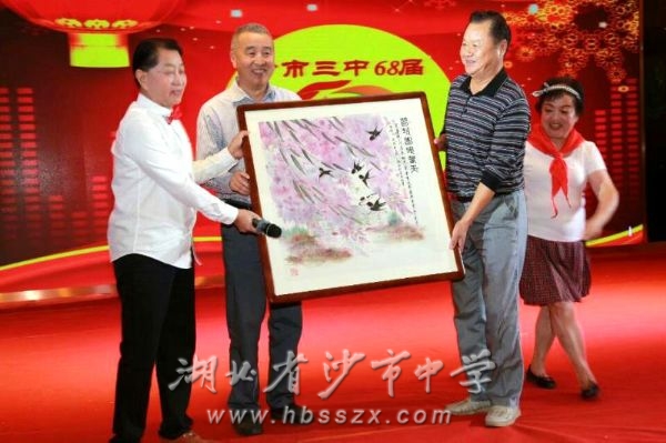 下午二點半,在荊州市晶崴國際大酒店正式拉開“沙市三中68屆畢業暨下鄉50周年”慶典活動序幕。張建國、張志禮、吳國器分別代表68屆慶典組委會、沙市中學、時任老師作了熱情洋溢的致詞。陳汝杰代表68屆向學校贈送“習坎樓的春天”精裝國畫。他創作的畫中以習坎樓為中心,六只靈動的飛燕在春光明媚、春風浩蕩、春花綻放中翩翩起舞,寓意三中老三屆高、初中8個班級的同學們回歸母校的別樣情懷,也象征歷久彌新的習坎文化永遠象春天一樣充滿生機活力。隨后表演的19個文藝節目將大會推向高潮。80歲的常麗老師第三次參與老三屆師生聯唱充滿異國風情的《喀秋莎》,贏得滿堂喝彩;初一(3)班用歌伴舞《長大后我們成了你》,詮釋了感念師恩之情,并為臺下10多名老師戴上了鮮艷的紅領巾;高一(4)班舞蹈專家朱丹兩次專程從深圳趕回編創,與毛先珍、李書華、陳永芬、鄧顯珍、湯萍同學共同表演傘舞《桃花三月開》,別開生面;陳汝杰與廖祖英會場潑墨作畫,引來掌聲不斷;楊際國指揮高一(3)班30人合唱《中國知青之歌》,動人心弦;市曲藝家協會副主席友情參演、楊圣泉領舞的情景舞蹈《山的壯想》,令人遐思無限……每一個節目都有看點,都凝結了同學們的心血。慶典節目總監汪季芳一年來更是操心費神,功不可沒。68屆組委會11名同學及全體演出人員辛苦忙碌近一年,讓慶典彰顯出三大與眾不同:在冊8個班全部參與;到會人數比66、67屆多;活動內容更加精彩......