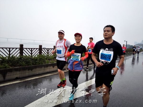21日,鄭華老師披甲出戰(zhàn)全馬,李藝老師出征半馬,另有10名教師和28名學生參加了迷你馬拉松的比賽。盡管天公不作美,比賽正當時,小雨轉(zhuǎn)為中雨,冷氣逼人,但我校參賽師生仍以飽滿的熱情去享受比賽并安全完賽;還有更多的師生冒雨站在橫跨一江兩城三區(qū)的賽道旁,雖然全身都被大雨淋透,但熱情不減,揮舞著紅旗為選手加油,完美體現(xiàn)了習坎人的人文風采。