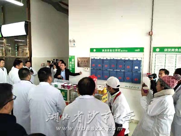 熊禮才校長引導考察組深入食堂的切配間、洗消廳、農藥殘留檢測室等操作間檢查各項工作,謝秀才詳細介紹了食堂采購、貯存、清洗、加工、用餐、消毒、監管、應急等工作流程。考察組首先來到食堂大廳,查看食品安全公示欄,了解食堂及供貨商的資質情況,考察組指出希望我校食堂保持優良傳統,將資質分類做到更細致。接著,考察組又來到食堂烹飪區,了解整個食品生產制作的流程,對于整個菜品制作的過程,各位領導給予了極大的贊許。隨后,考察組來到了庫房,對食堂儲存情況進行了解與咨詢??疾旖M對我校食堂的就餐環境、安全保障、就餐質量給予了高度評價及充分肯定。