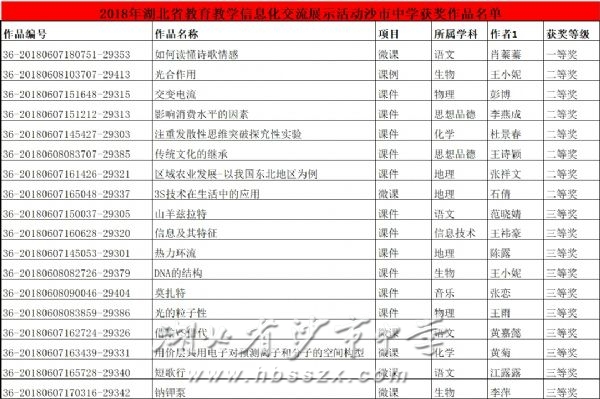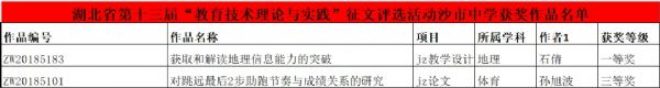 (1)2018年湖北省教育教學信息化交流展示活動我校獲獎作品名單