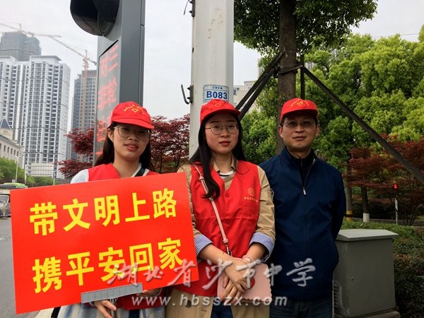 4月13日上午,在學(xué)工處主任李雪冰的帶領(lǐng)下,我校教工團支部4名代表赴中心城區(qū)江津路口進行交通文明勸導(dǎo)活動。