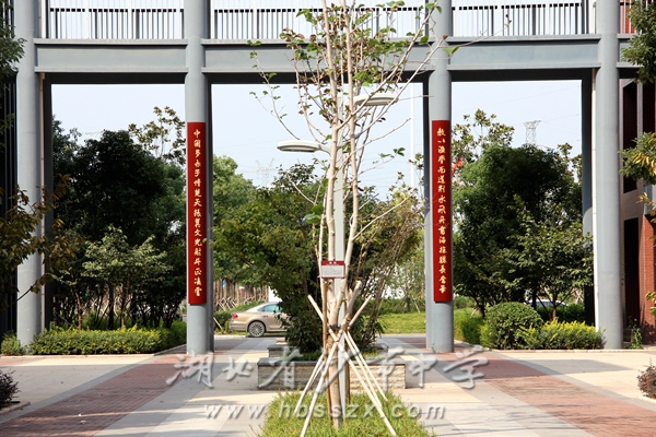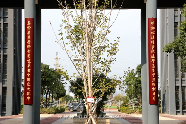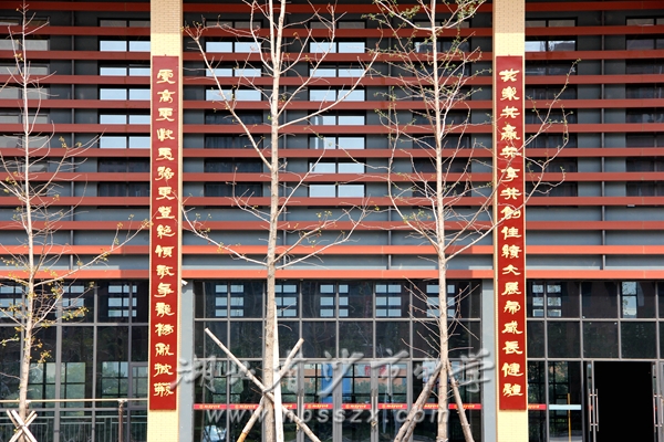 疊水墻前大門(綜合樓后門)楹聯(lián):