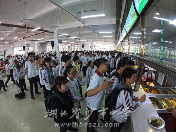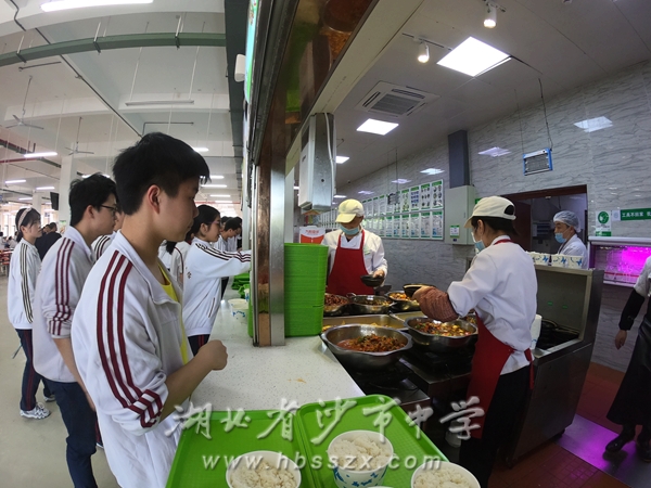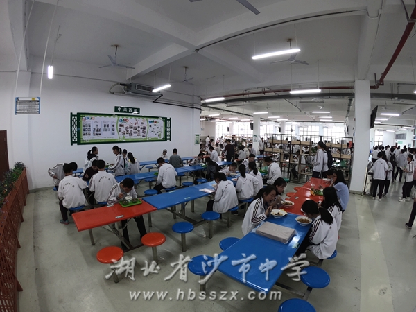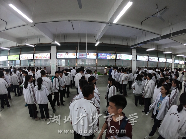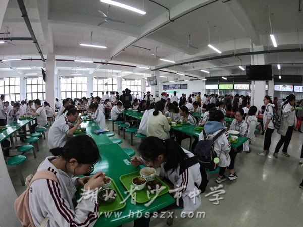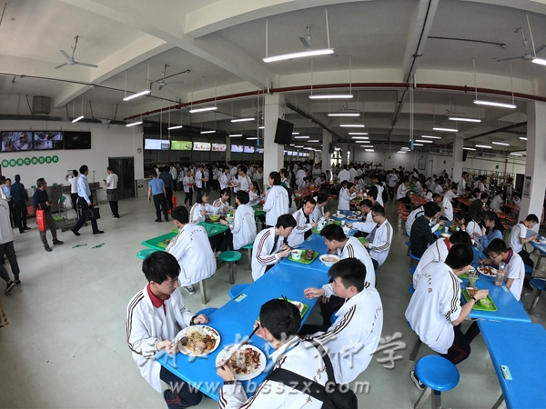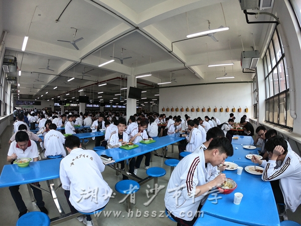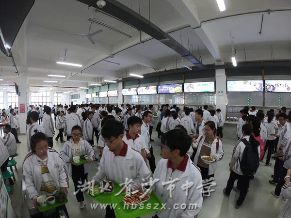 學(xué)生食堂分上下兩層。通過(guò)適當(dāng)?shù)腻e(cuò)峰安排,可供全校3000多名師生在半小時(shí)內(nèi)完成就餐。