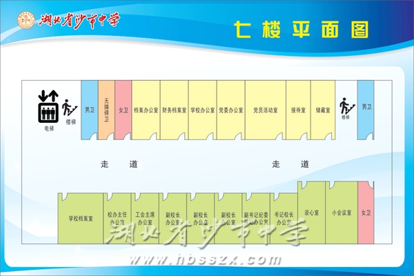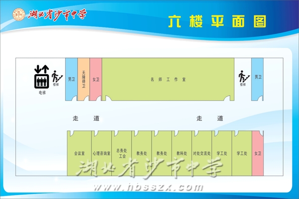 綜合樓坐落于教學區南側、習坎廣場邊。在沙市中學總平面圖上,位于中下方,紅色粗線框定區域。