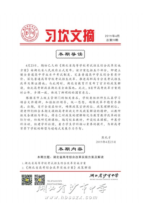 本期主題:湖北省高考綜合改革實施方案及解讀 導 讀
