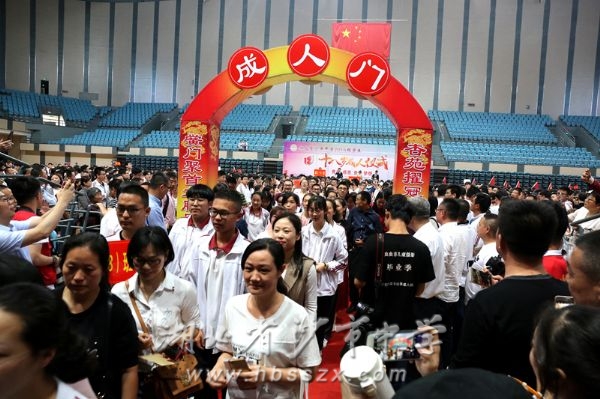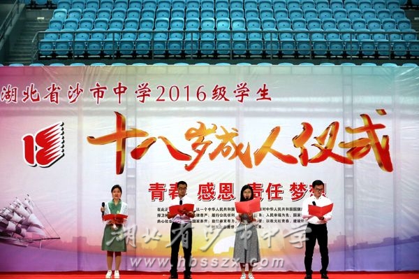 5月4日下午,沙市中學以“成長、感恩、責任、夢想”為主題的學生成人儀式絢麗啟幕,2016級全體師生和家長齊聚荊州市體育中心籃球館,共同見證屬于高三學子的青春盛典。