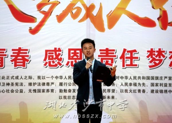 學生代表1603班吳悠發言,向同學們共勉18歲成年的擔當與責任。