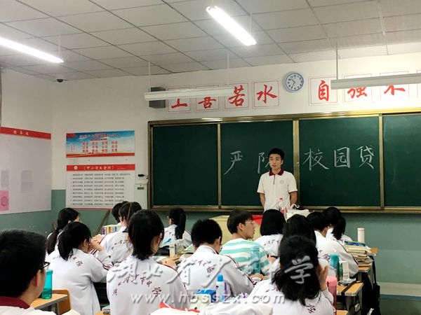 根據省教育廳《關于切實加強校園不良網貸風險防范和教育引導工作的通知》的精神,為進一步加強校園不良借貸風險防范,教育引導學生樹立文明、理性和健康的消費觀念,我校于2019年5月4日上午自習課組織開展了“嚴防校園貸”安全教育主題班會。