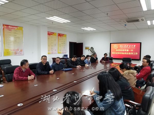 分學科交流 5月8日上午,湖南省常德市一中成程副校長率領教務科長楊開文、奧賽培訓辦主任向炯老師一行十余人,來我校就各學科奧林匹克競賽培訓經驗展開了交流,我校熊禮才校長、趙文華副校長等領導給予了熱情接待。