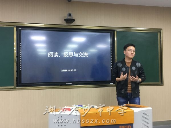 王祎豪老師進行分享 第七位分享的老師是王祎豪老師。王老師分享的題目是《閱讀、反思與交流》。王老師認為,閱讀反思與交流,對于一個教師的成長來說都不可或缺。教師應當有持續的閱讀計劃,努力提升閱讀量,使自己能夠對自己所教學科有更加深刻的認識。不斷擴充知識視野,并結合自己的教學實際進行反思,轉變教學思路,才能高屋建瓴,在教學中更加游刃有余,成為教育教學能手。