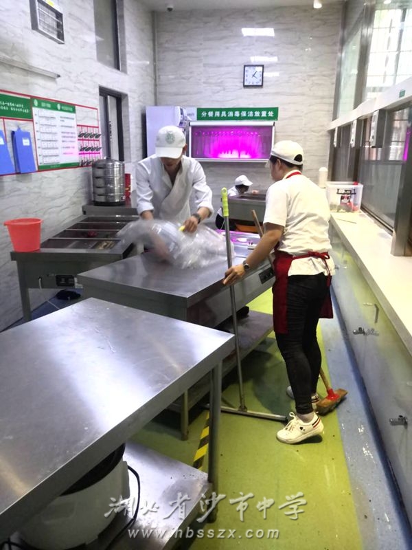 為了迎接高考,近期我校食堂安排工作人員利用工作間歇進行了一次全面大掃除,仔細清洗了油煙管道、冰箱、廚房機械,刷洗了工作臺、餐桌椅、貨架,清除了地面的頑固污漬,并對食堂外圍大院進行了徹底沖刷;另外,還對廚房的倉庫進行了整理、打掃,并將貨架物品進行重新整理分類碼放,為全體師生營造干凈整潔的用餐環境。