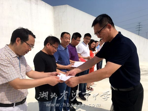 2019年6月3日上午九點半,沙市中學舉行了6月“感動校園人物”頒獎儀式。頒獎儀式由高一(10)班劉雪菲和高一(7)班劉鑫輝同學主持,我校黨委書記、校長熊禮才為獲獎教師頒獎,本次獲得“感動校園人物”獎的是2016級高三全體班主任,他們是:李雪冰、羅忠、孫青、林智、王曉巍、葉世安、李剛、熊華、胡振良、吳俊威、冷勁松、潘磊、陳雄、高長虹、冉呈艷、張群武、王鵬、楊潔。