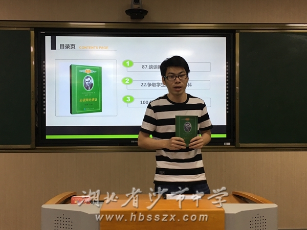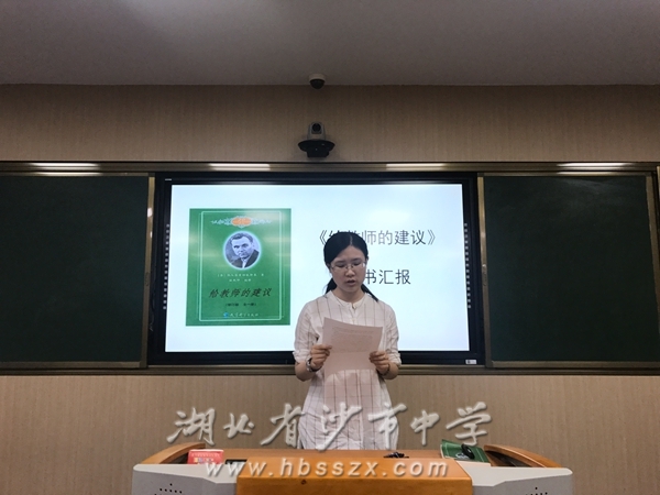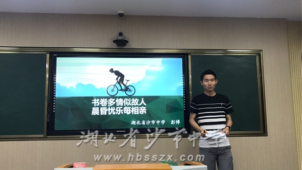 彭博老師率先進行了分享。彭老師以《學記》中的論述“教學相長”的一段話導入,倡導教師在教學之余不忘多讀書來提升自我,隨后順勢提出因材施教的理念,鮮活的學生需要同樣鮮活的教育教學手法來幫助其實現自己層面上的發展,將教育建立在對個體的尊重和理解之上。此外,他還以讀書筆記的形式分別從教育理念、教學工作、給學生的建議、師生關系和綜合素質方面分享了所得,并向大家推薦了網上閱讀的一些資源,倡議大家閱讀隨身化、實時化,通過閱讀,沉淀自己的心靈,獲得內心的平靜。