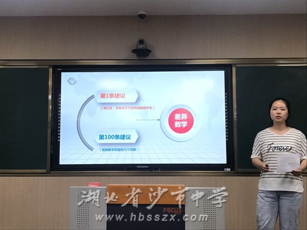 隨后,張媛媛老師以本著作中提到的第1條建議和第100條建議為切入點,表達了自己對“差異教學”教學理念的思考。張老師結合自己的教學經歷對實施差異教學的必要性和局限性做出了一定的闡釋。分享的最后,張老師提出,在新高考改革背景下,作為一線英語教師,應該勇于創新,尊重學生的個體差異,努力挖掘每個學生的潛能并最終幫助每個學生實現自我成長最大化。